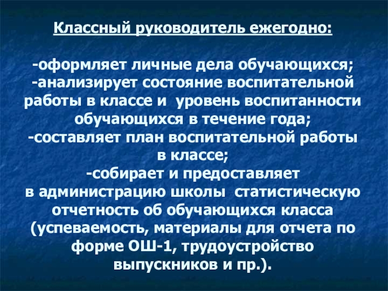 Слайд 23Классный руководитель ежегодно: