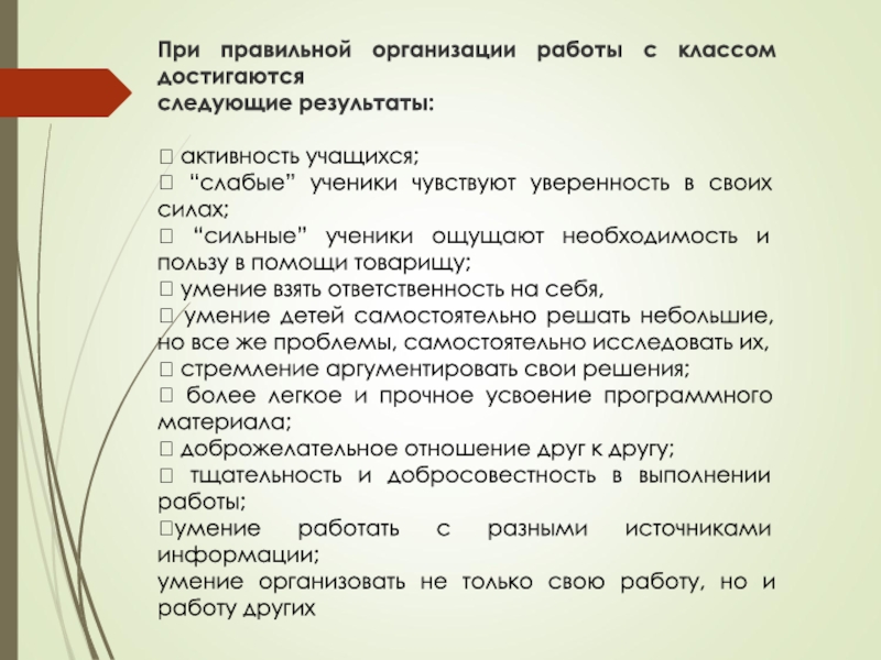 “сильные” ученики ощущают необходимость и пользу в помощи товарищу;
