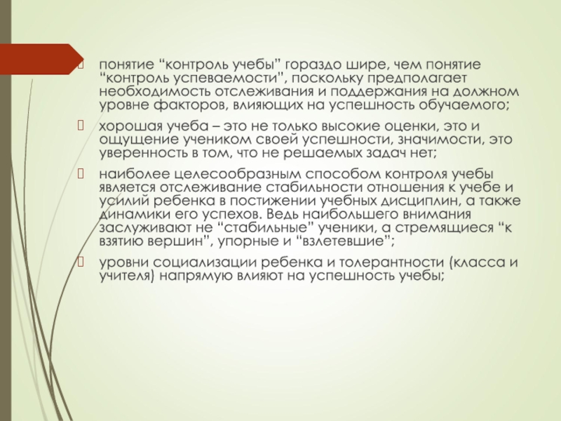 понятие “контроль учебы” гораздо шире, чем понятие “контроль успеваемости”, поскольку