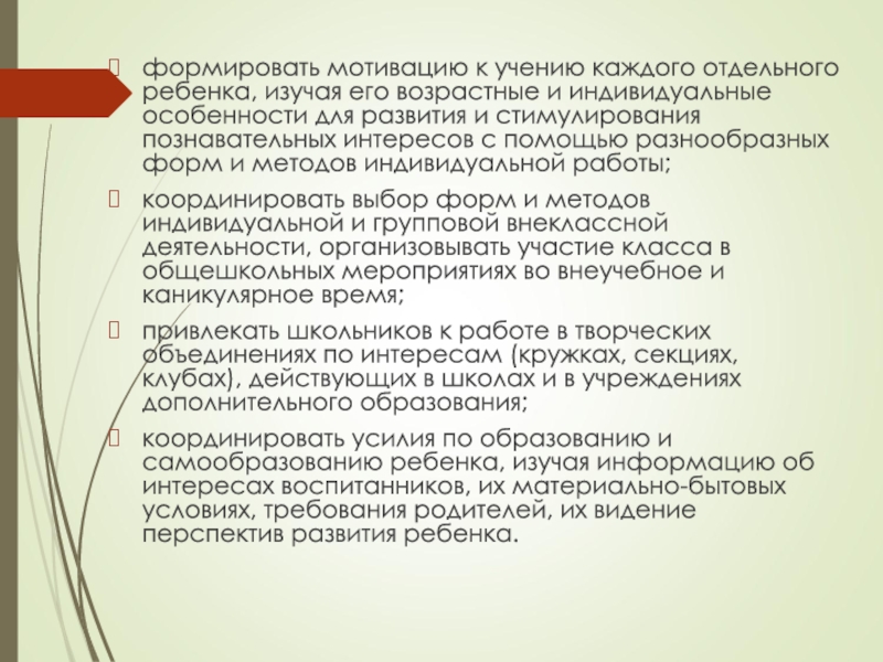 Слайд 10формировать мотивацию к учению каждого отдельного ребенка, изучая его возрастные и