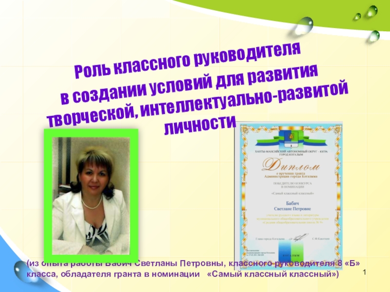 (из опыта работы Бабич Светланы Петровны, классного руководителя 8 «Б» класса, обладателя гранта в номинации «Самый классный классный»)