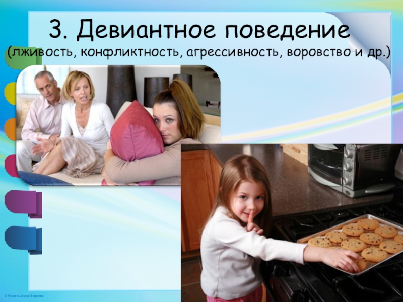 3. Девиантное поведение  (лживость, конфликтность, агрессивность, воровство и др.)