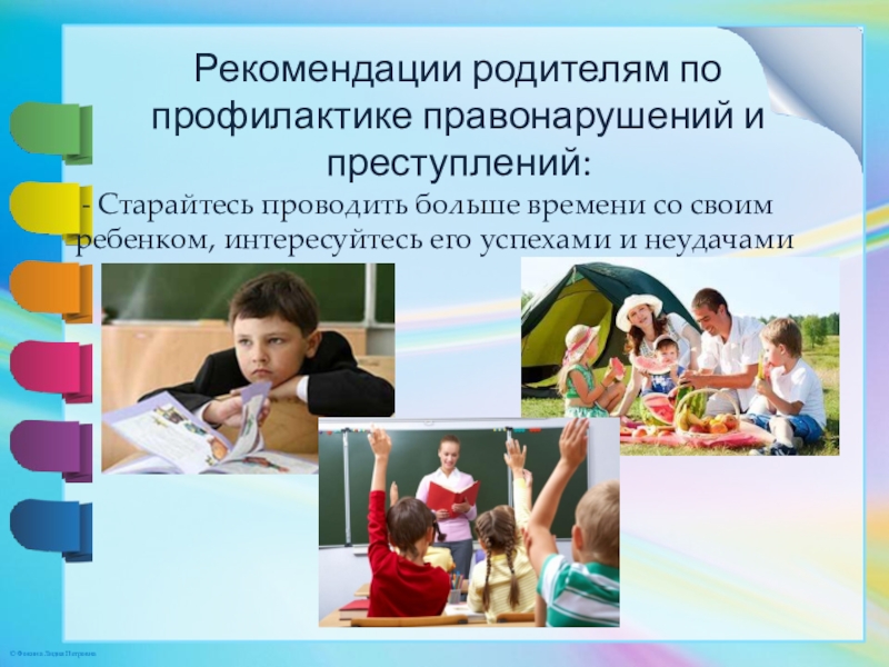 Слайд 30Рекомендации родителям по профилактике правонарушений и преступлений: