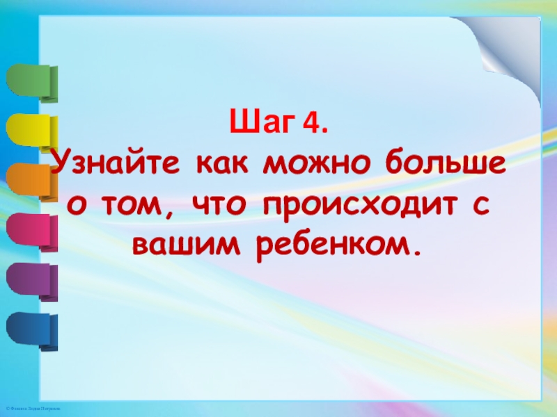 Слайд 15Шаг 3. Сохраните доверие ребёнка к себе. Поговорите с ним на равных.