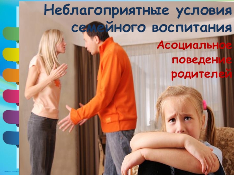 Слайд 8Неблагоприятные условия семейного воспитания Асоциальное