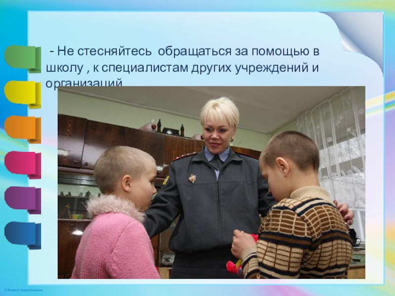 - Не стесняйтесь обращаться за помощью в школу , к специалистам других учреждений и организаций