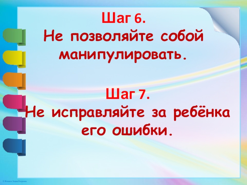 Шаг 6. Не позволяйте собой манипулировать. Шаг 7. Не исправляйте за ребёнка его ошибки.