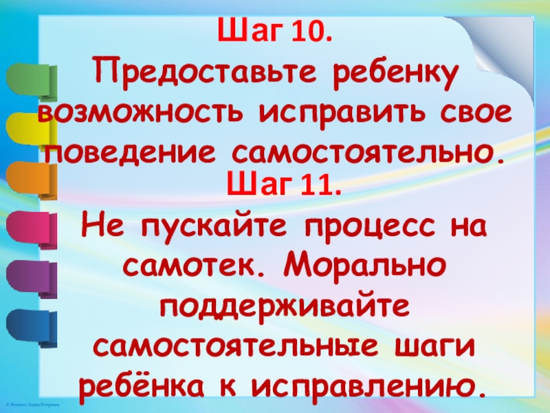 Слайд 20Шаг 10. Предоставьте ребенку возможность исправить свое поведение самостоятельно.
