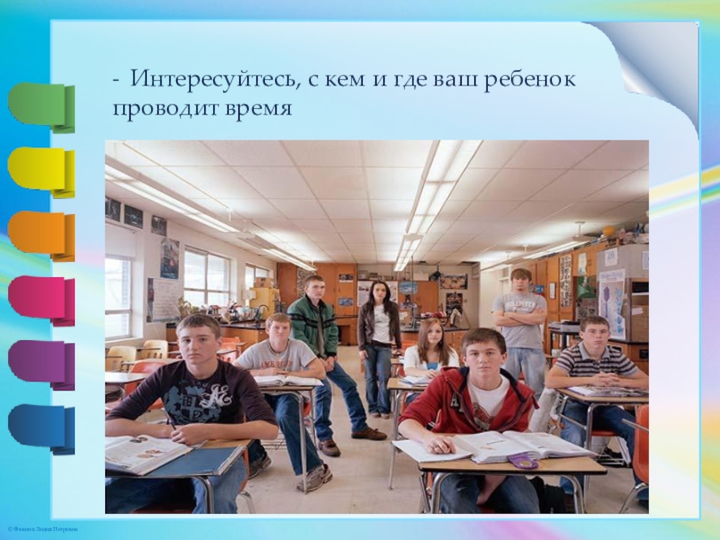 Слайд 33- Интересуйтесь, с кем и где ваш ребенок проводит время