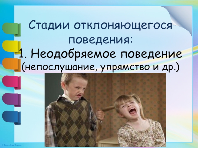 Стадии отклоняющегося поведения: 1. Неодобряемое поведение (непослушание, упрямство и др.)