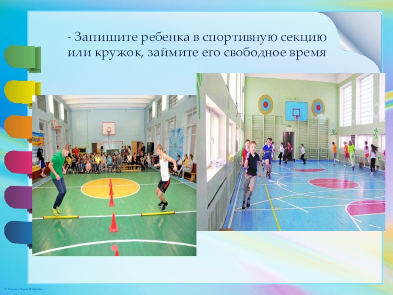 Слайд 34- Запишите ребенка в спортивную секцию или кружок, займите его свободное
