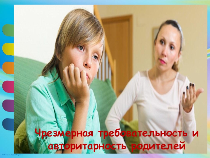 Слайд 12Чрезмерная требовательность и авторитарность родителей