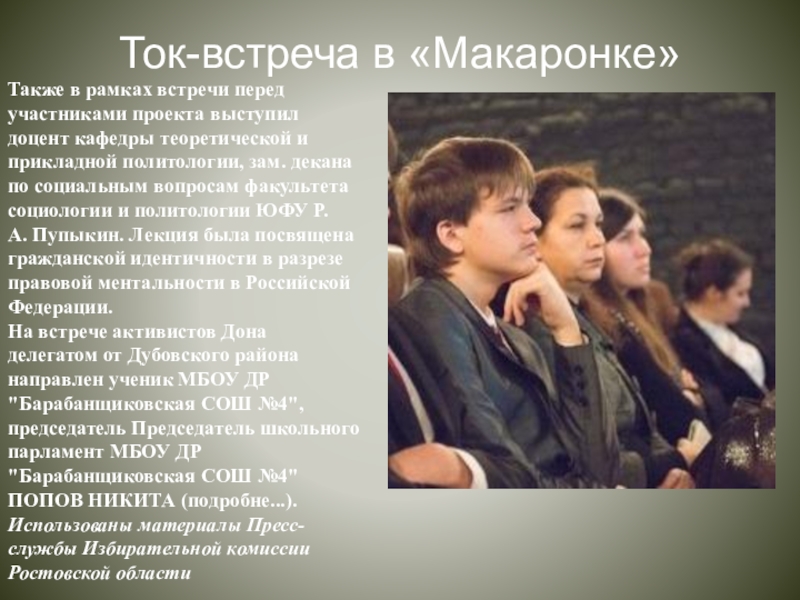 Ток-встреча в «Макаронке»