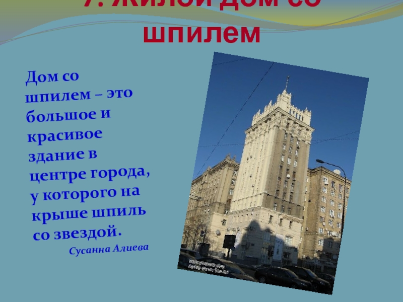 большое и красивое здание в центре города, у которого на крыше шпиль со звездой.