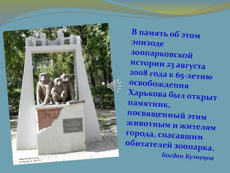 2008 года к 65-летию освобождения Харькова был открыт памятник, посвященный этим животным и жителям города, спасавшим обитателей зоопарка.