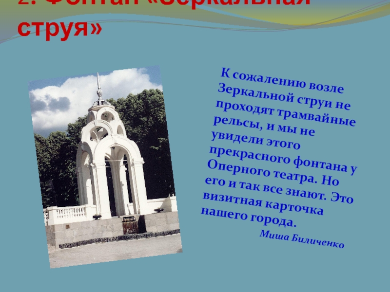 Мне очень понравилось наше путешествие! И я хочу сказать большое спасибо нашему классному руководителю Зое Анатольевне, которая так много знает о Харькове и поделилась своими знаниями с нами.
