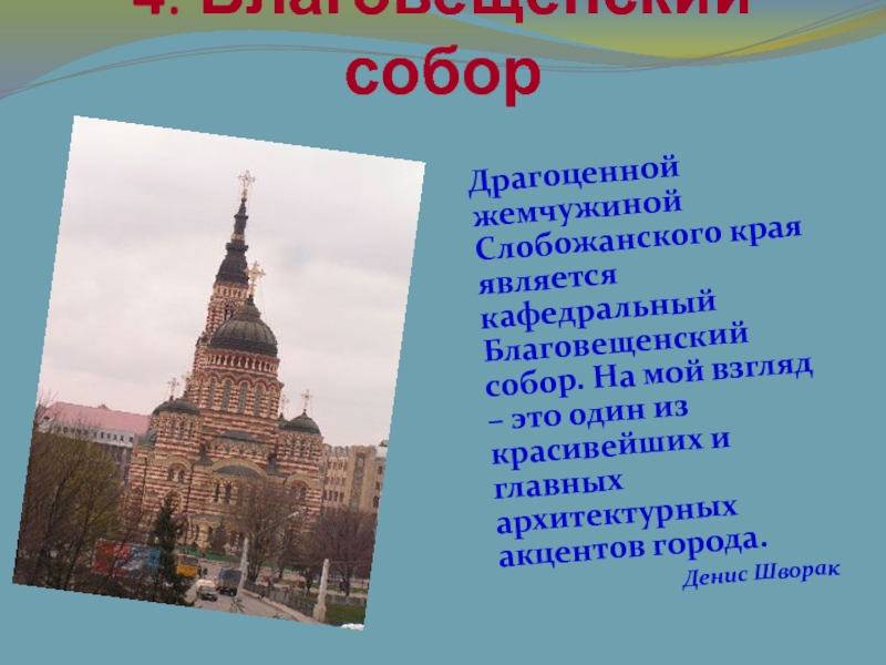 Драгоценной жемчужиной Слобожанского края является кафедральный Благовещенский