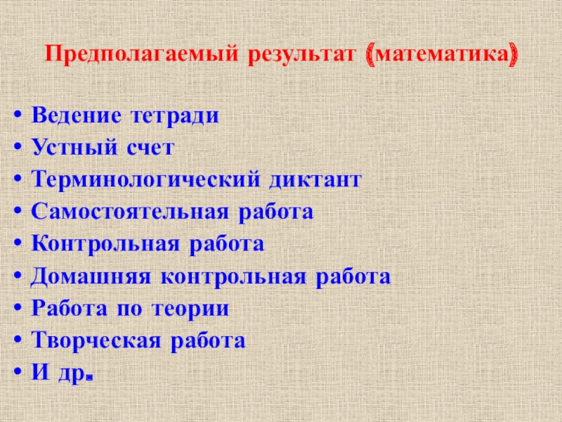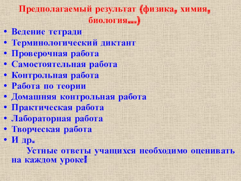 Слайд 47Предполагаемый результат (физика, химия, биология…)