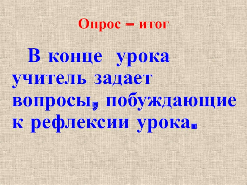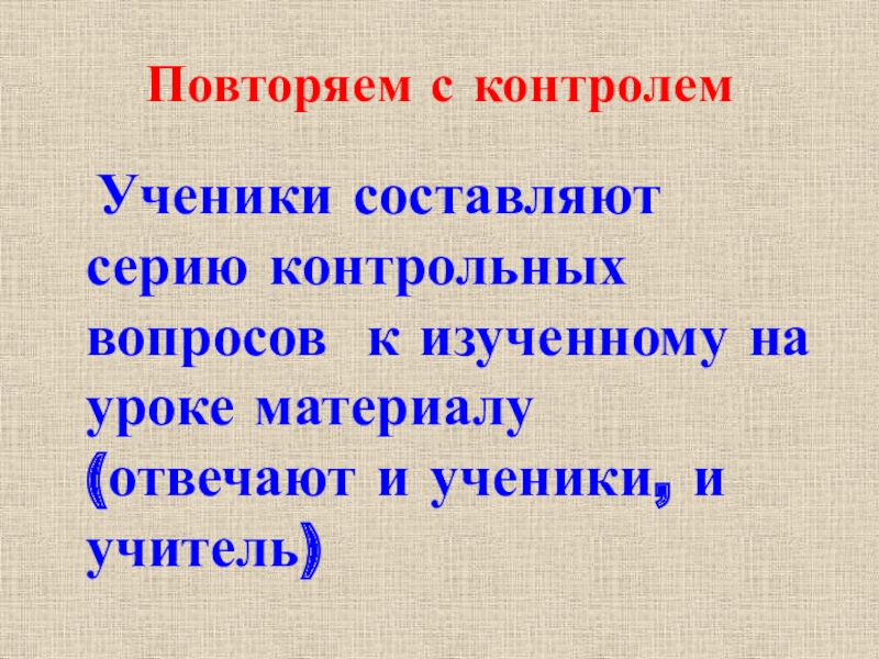 изученному на уроке материалу (отвечают и ученики, и учитель)