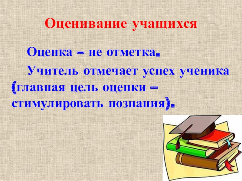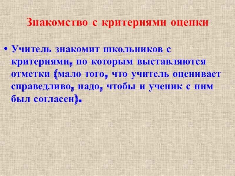 отметки (мало того, что учитель оценивает справедливо, надо, чтобы и ученик с ним был согласен).