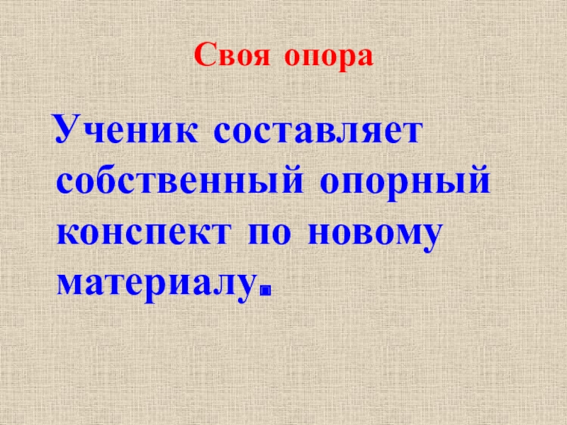 ✓ задание общее для всего класса, а для слабых учеников дается вспомогательный материал, облегчающий выполнение задания (опорная схема, алгоритм, таблица, программированное задание, образец, ответ и т. д.);