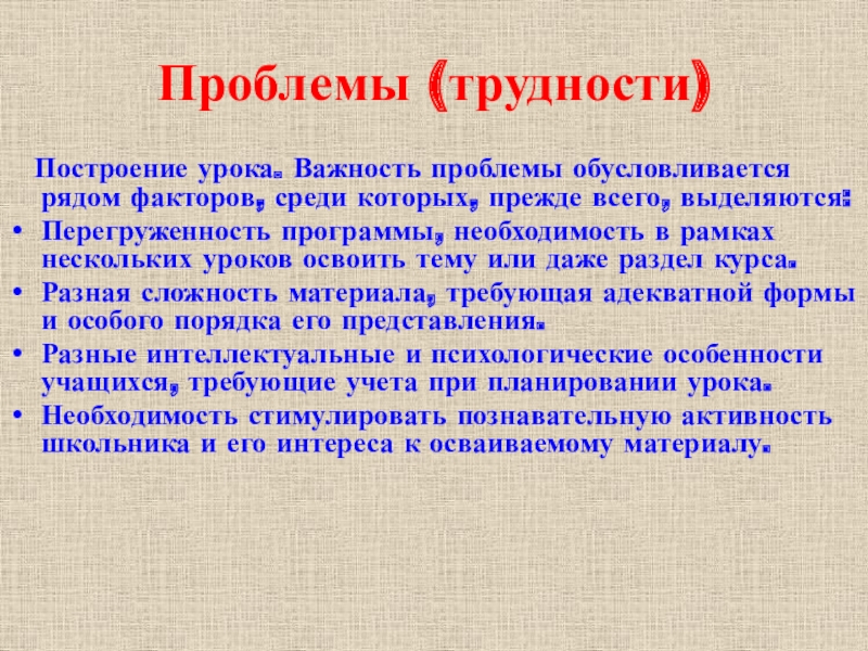 Построение урока. Важность проблемы обусловливается рядом факторов, среди