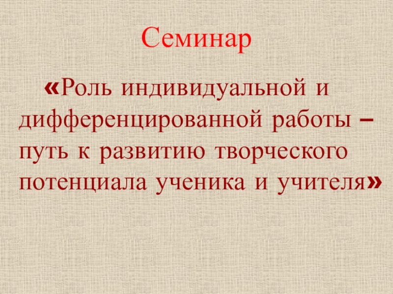 «Роль индивидуальной и дифференцированной работы – путь к развитию творческого потенциала