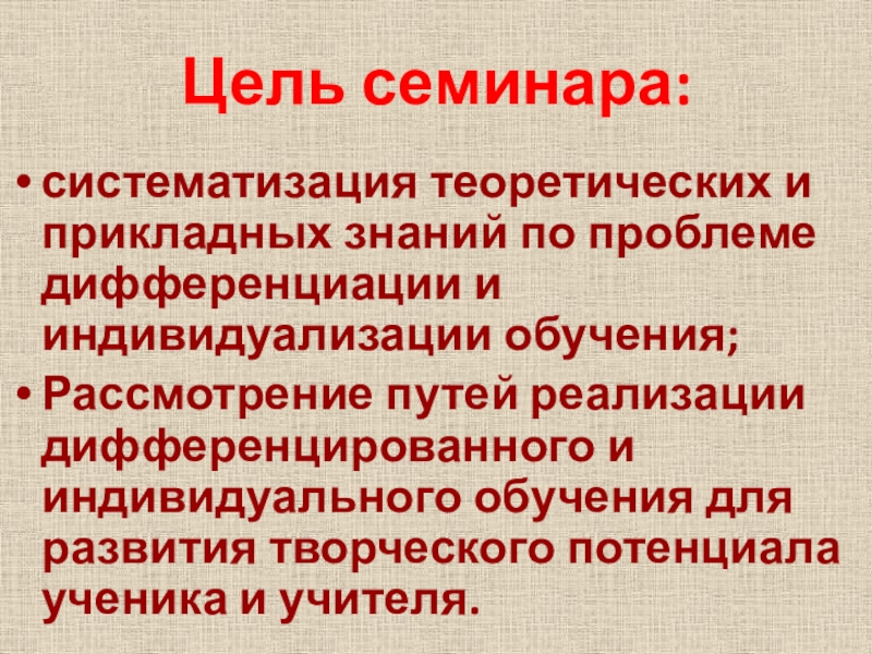 систематизация теоретических и прикладных знаний по проблеме дифференциации и индивидуализации