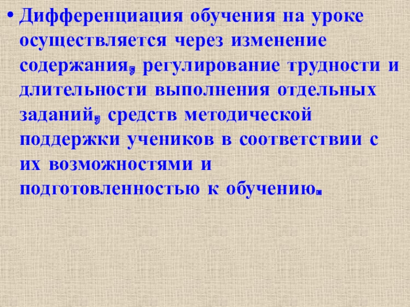 использовать дифференцированное обучение не эпизодически, а в системе; на всем протяжении обучения;
