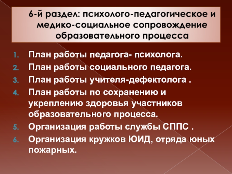 6-й раздел: психолого-педагогическое и медико-социальное сопровождение образовательного процесса
