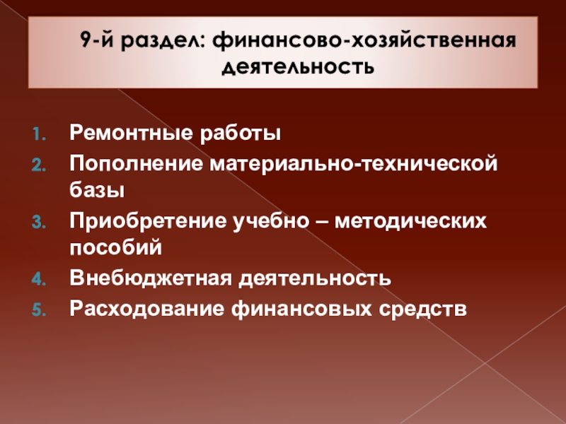 Слайд 259-й раздел: финансово-хозяйственная деятельность