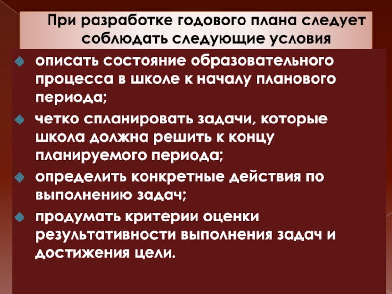 четко спланировать задачи, которые школа должна решить к концу планируемого периода;