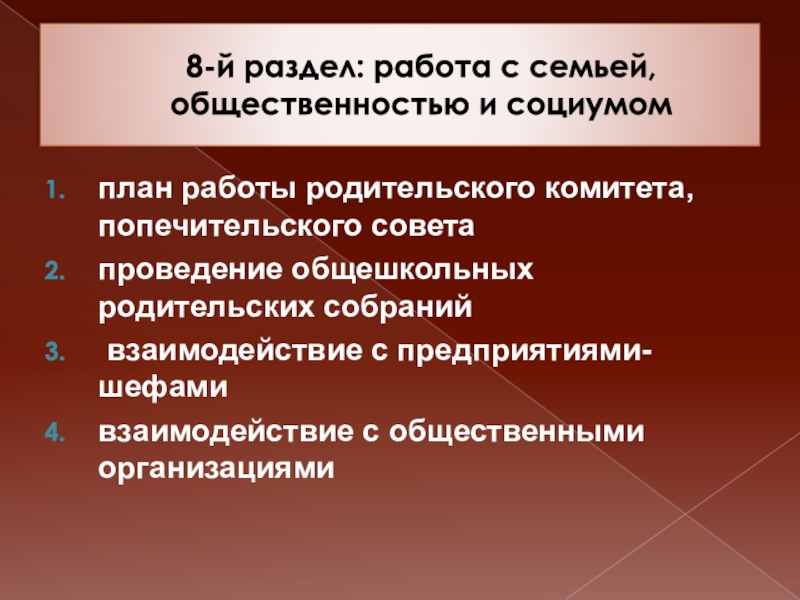 Слайд 248-й раздел: работа с семьей, общественностью и социумом