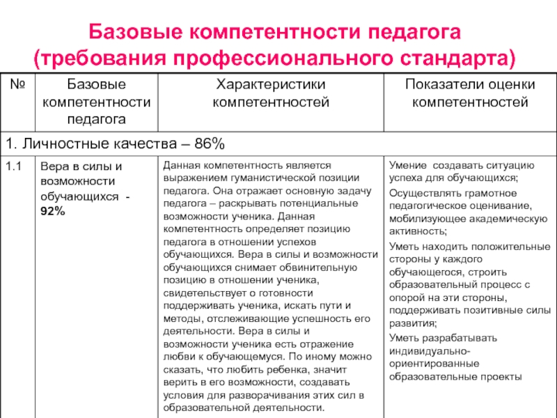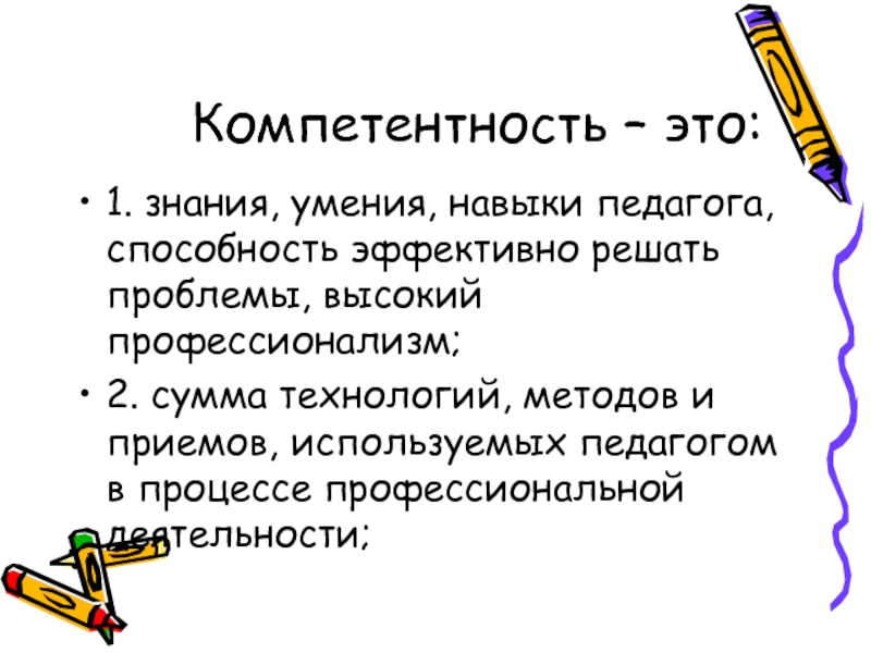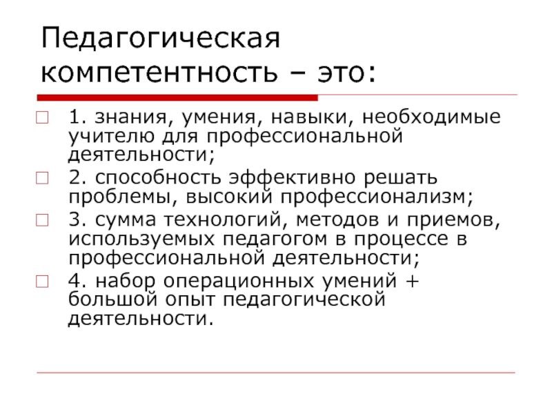 1. знания, умения, навыки педагога, способность эффективно решать проблемы,