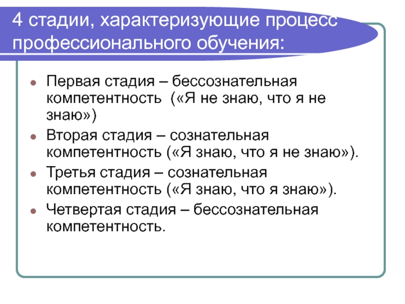 Слайд 294 стадии, характеризующие процесс профессионального обучения: