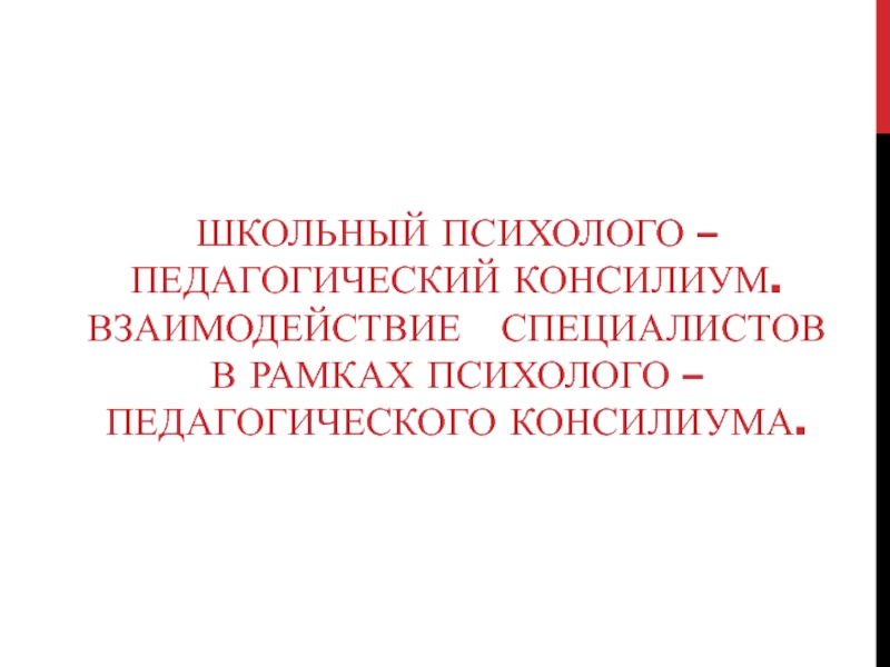 ШКОЛЬНЫЙ ПСИХОЛОГО – ПЕДАГОГИЧЕСКИЙ КОНСИЛИУМ. ВЗАИМОДЕЙСТВИЕ СПЕЦИАЛИСТОВ В РАМКАХ ПСИХОЛОГО