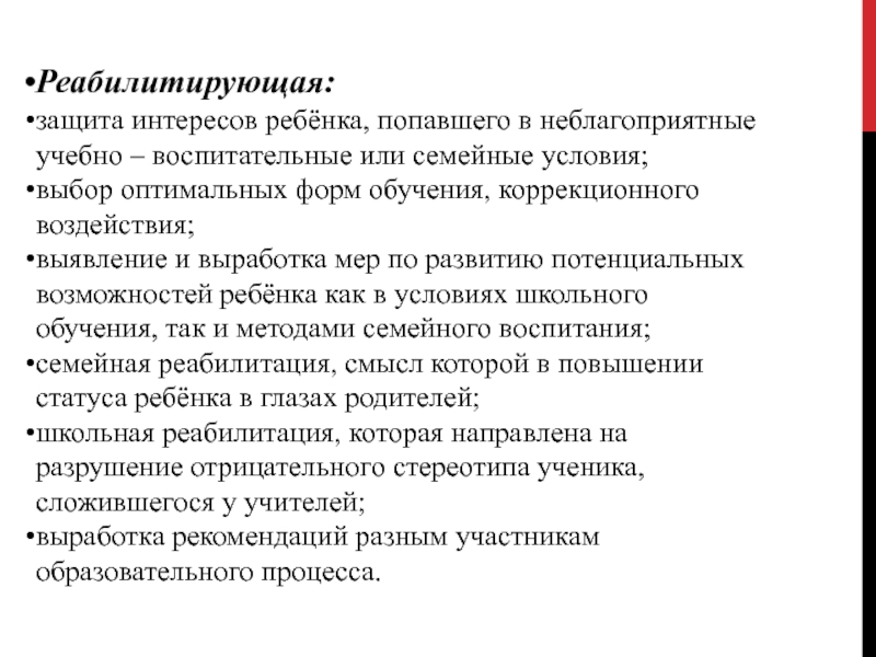 школьная реабилитация, которая направлена на разрушение отрицательного стереотипа ученика, сложившегося у учителей;