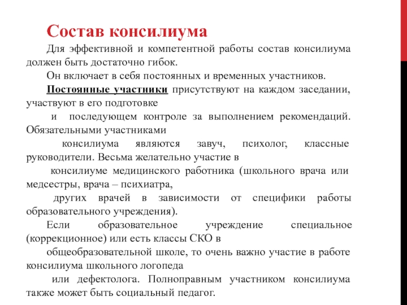 Для эффективной и компетентной работы состав консилиума должен быть достаточно