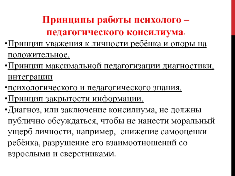Слайд 7Принципы работы психолого – педагогического консилиума: