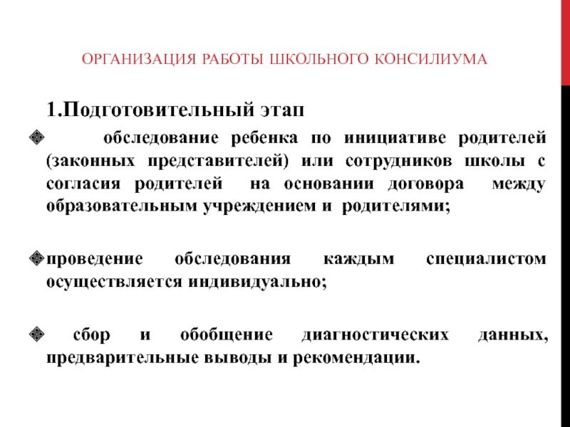 Слайд 12ОРГАНИЗАЦИЯ РАБОТЫ ШКОЛЬНОГО КОНСИЛИУМА