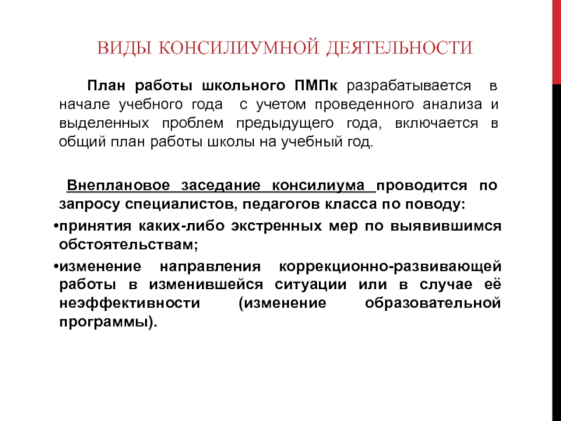 План работы школьного ПМПк разрабатывается в начале учебного года