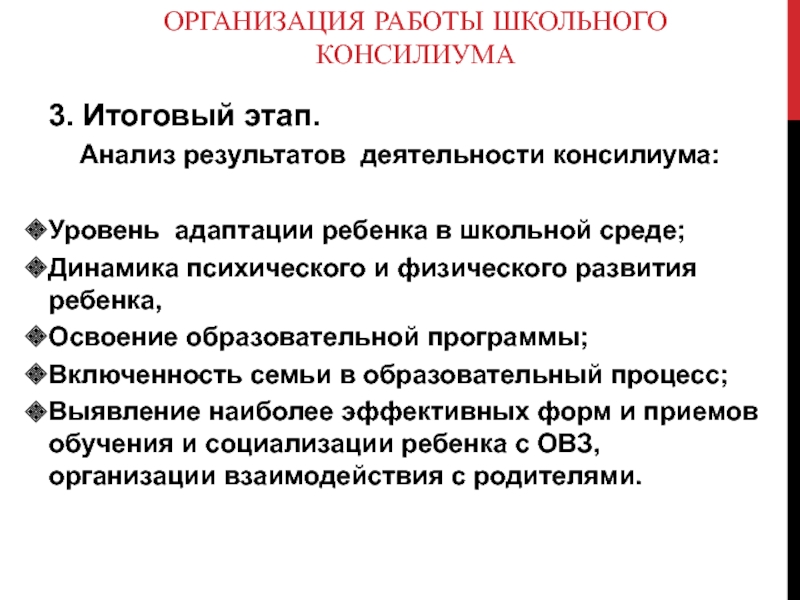 Слайд 11ОРГАНИЗАЦИЯ РАБОТЫ ШКОЛЬНОГО КОНСИЛИУМА