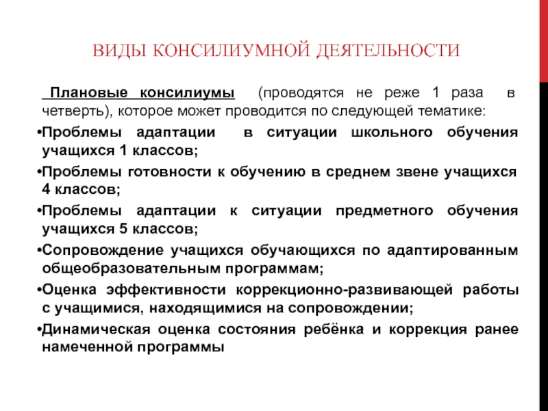 Слайд 16ВИДЫ КОНСИЛИУМНОЙ ДЕЯТЕЛЬНОСТИ