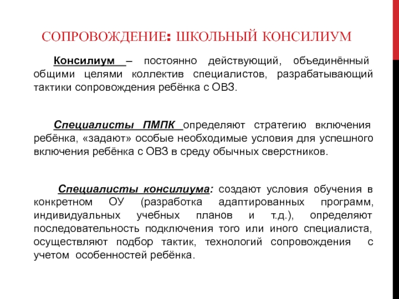 Слайд 3СОПРОВОЖДЕНИЕ: ШКОЛЬНЫЙ КОНСИЛИУМ