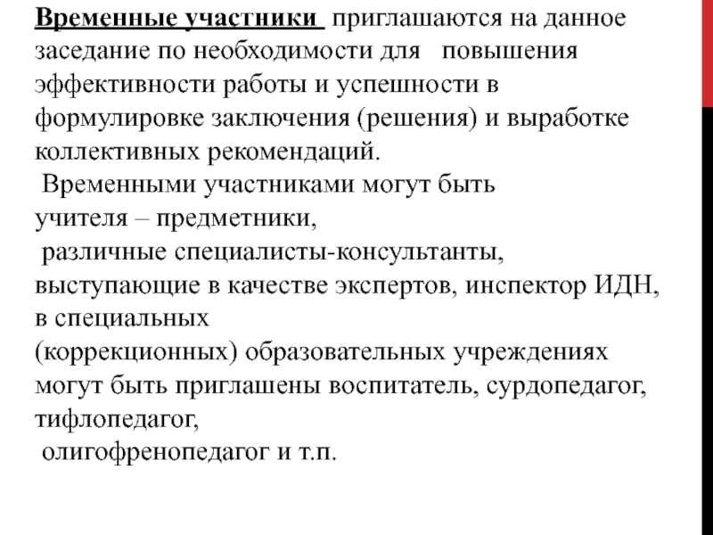 Слайд 14Временные участники приглашаются на данное заседание по необходимости для повышения