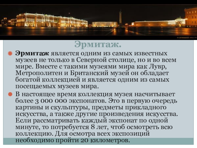 Эрмитаж является одним из самых известных музеев не только в Северной