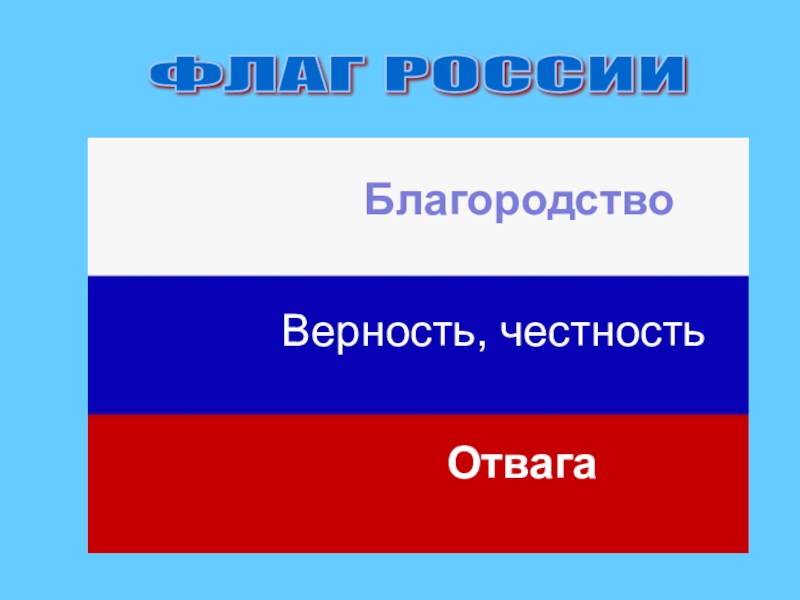 ФЛАГ РОССИИ БлагородствоВерность, честностьОтвага
