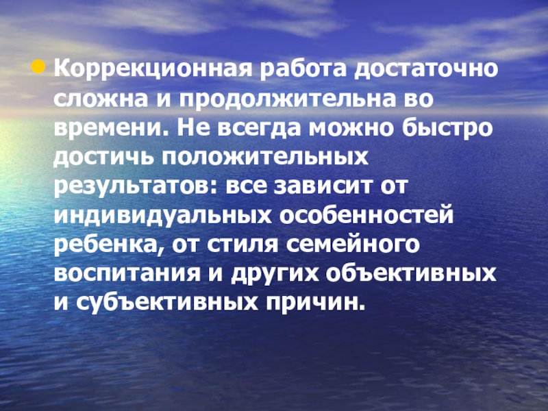 Коррекционная работа достаточно сложна и продолжительна во времени. Не всегда можно
