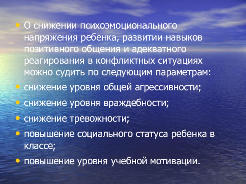 О снижении психоэмоционального напряжения ребенка, развитии навыков позитивного общения и адекватного