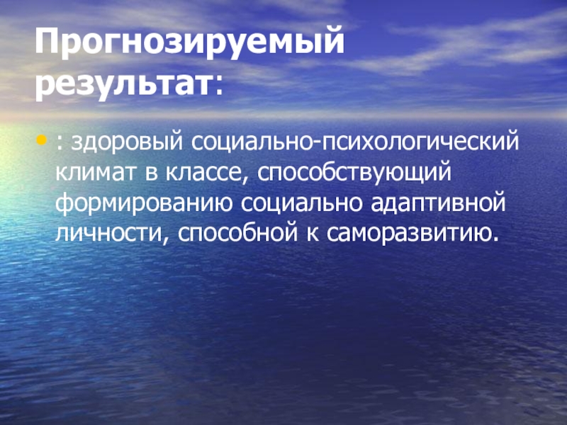 : здоровый социально-психологический климат в классе, способствующий формированию социально